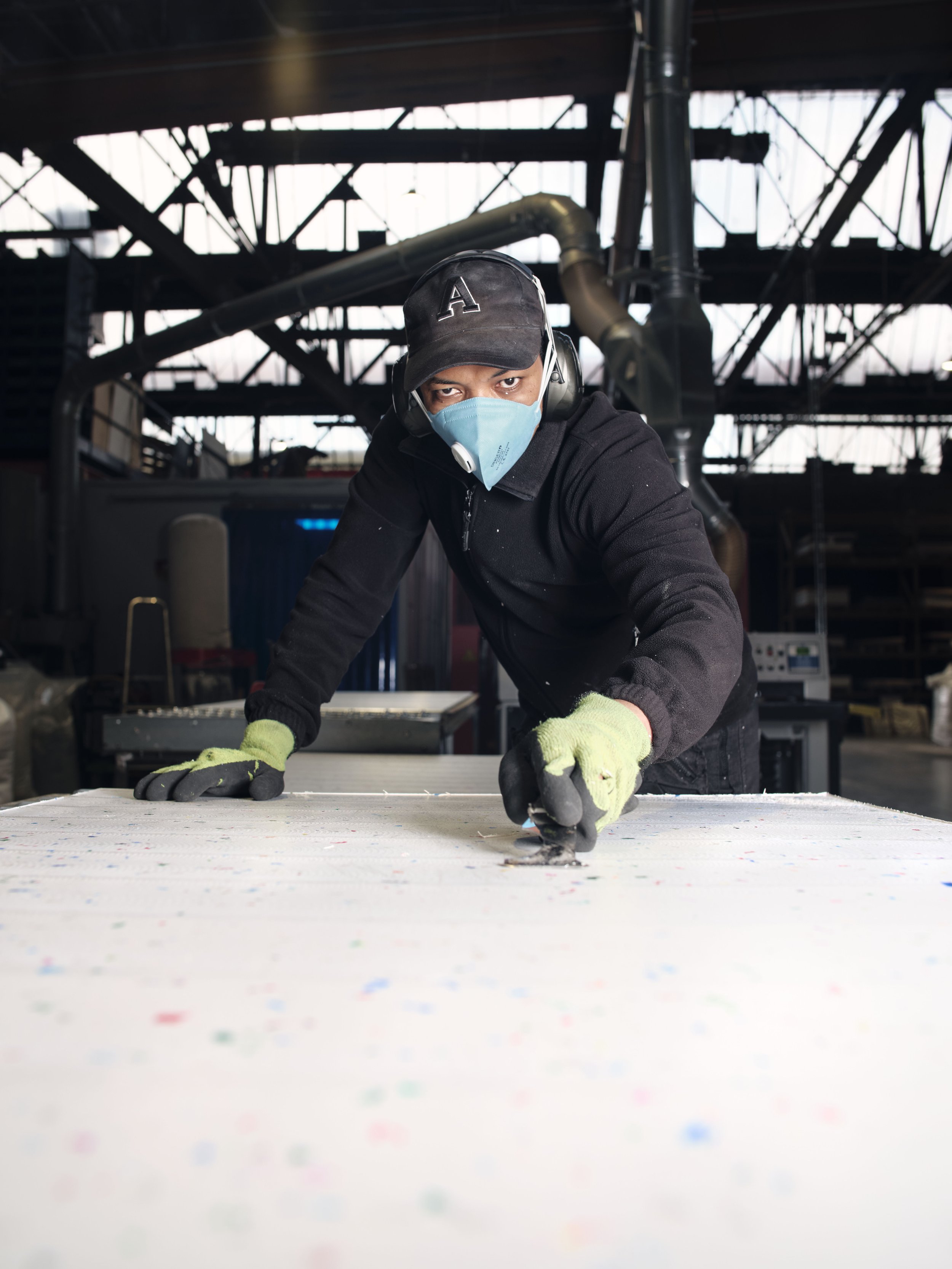 Ce projet est un hommage aux couturières, aux soudeurs, aux designers, aux imprimeurs, aux ouvriers, aux technicien.